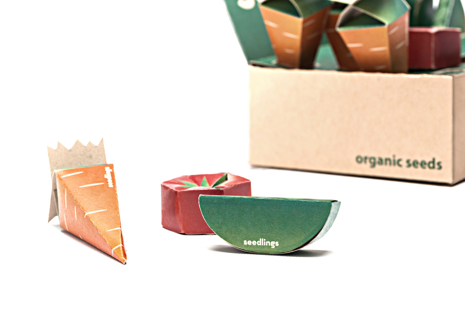 Контейнеры для семян выполнены в форме овощей, которые вырастут из них. Они изготовлены из биоразлагаемого материала, пишет Upakovano.ru. А внутри находится подкормка, немного земли и сами семена.