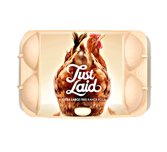 Дизайнеры решили подчеркнуть преимущества яиц, произведённых местными фермами. Ведь они попадают к потребителю быстрее, а, значит, сохраняют свежесть. Поэтому название яиц говорит именно об этом — Just Laid («только что отложенные»). Креативное исполнение основано на забавных карикатурах несушек, которые откладывают яйца в трёх разных позах, пишет Upakovano.ru.