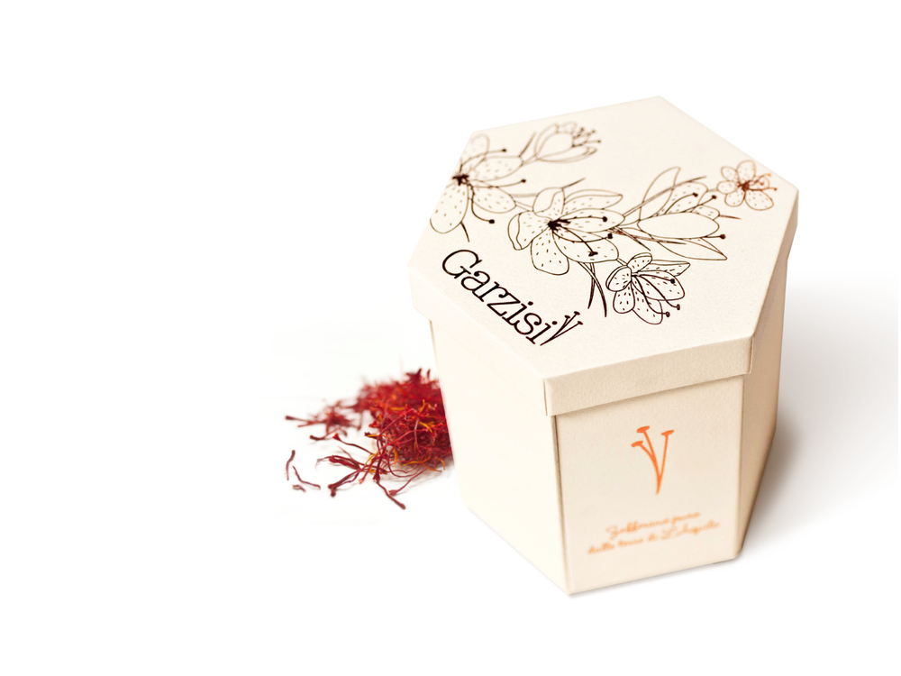 Все элементы вместе с небольшой брошюрой упакованы в элегантную шестигранную коробку, которая навеяна цветком шафрана, состоящим из шести лепестков. При открытии коробки все шесть сторон раскрываются, подобной лепесткам. Упаковка разработана так, чтобы надёжно сохранить все свойства шафрана.