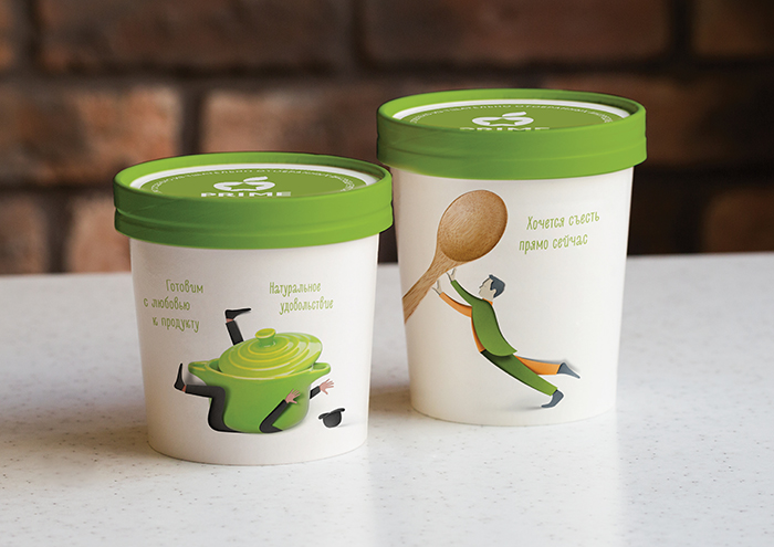 Чтобы отразить характер бренда Prime Star — открытый для экспериментов, коммуникабельный, не боящийся подшутить над собой, — дизайн-студией LINII была предложена концепция, основанная на иллюстрациях с ироничными сюжетами. Идея натуральности и свежести продукции была реализована с помощью стилистики Paperwork эстонским иллюстратором Eiko Ojala.