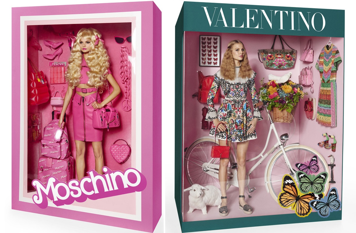 Чтобы добиться большей реалистичности в изображении кукольного набора, девушек снабдили аксессуарами: туфли, сумки, очки, зеркальца и прочее разместили на стенках брендированных коробочек Chanel, Valentino, Saint Laurent, Moschino, Louis Vuitton, Ralph Lauren.