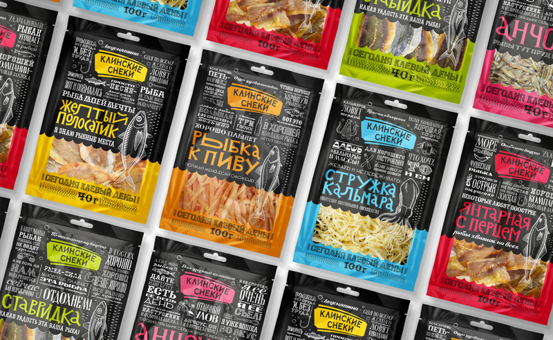 Для линейки соленых рыбных снеков необходимо было разработать упаковку, выделяющую продукт среди конкурентов, соответствующую современным тенденциям в дизайне и привлекающую внимание.