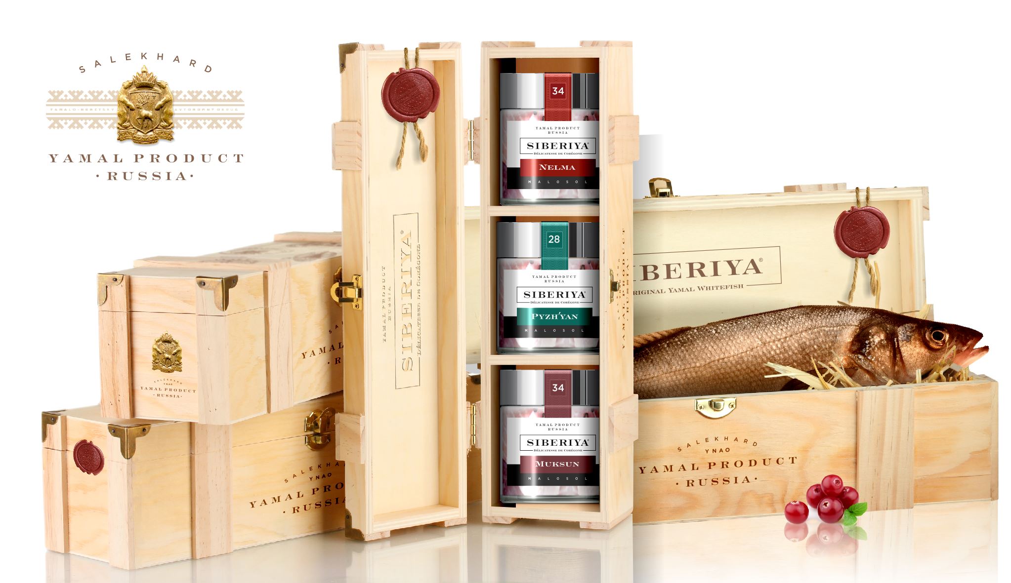 SIBERIYA — это премиальный бренд для рыбных деликатесов русского севера, обладающих уникальным вкусом. Для компании Yamal product бренд должен стать «визитной карточкой» региона Ямал, подчёркивающей его красоту и традиции.