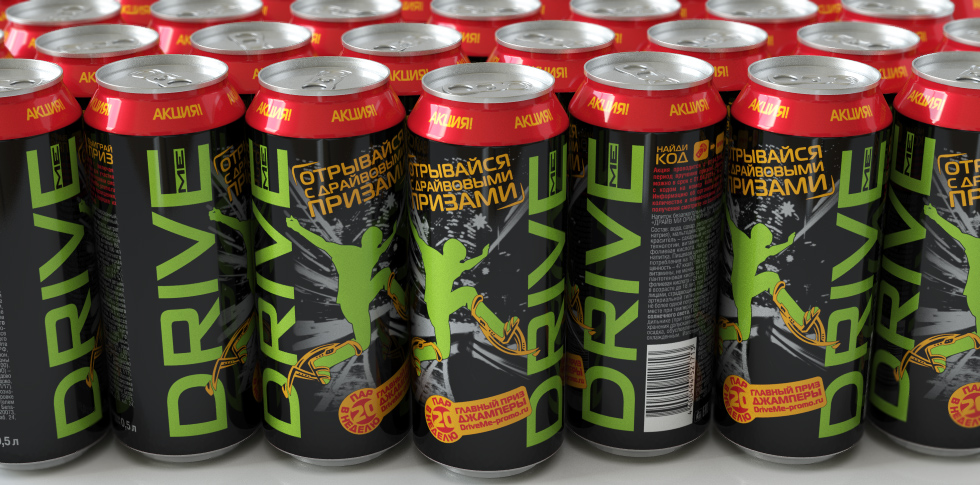 Брендинговое агентство DreamCatchers разработало дизайн промо-упаковки безалкогольного энергетического напитка Drive Me компании PepsiCo. Дизайн был выполнен для рекламной кампании, целью которой было привлечение аудитории к акции, повышение знания потребителями торговой марки и построение лояльности к бренду.