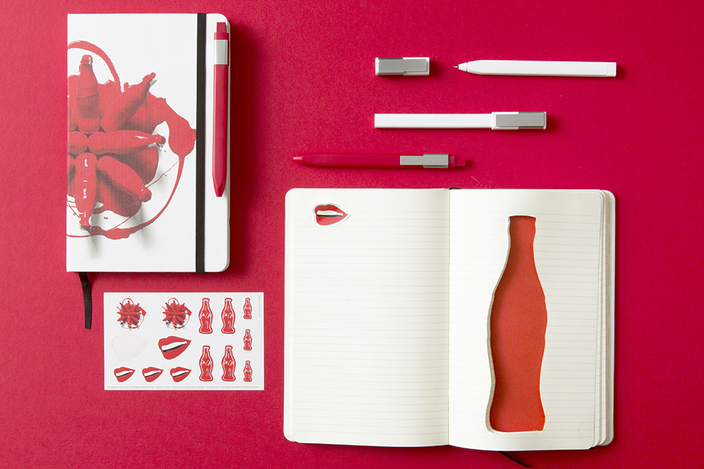 В качестве инновационного решения, блокноты Moleskine стали холстом для приглашённых в проект дизайнеров. В результате получилось пять эксклюзивных записных книжек со своей интерпретацией фирменной контурной бутылки Coke, пишет Upakovano.ru. Естественно, во всех дизайнах использовались одни и те же цвета: белый, чёрный и культовый красный цвет Coca-Cola.