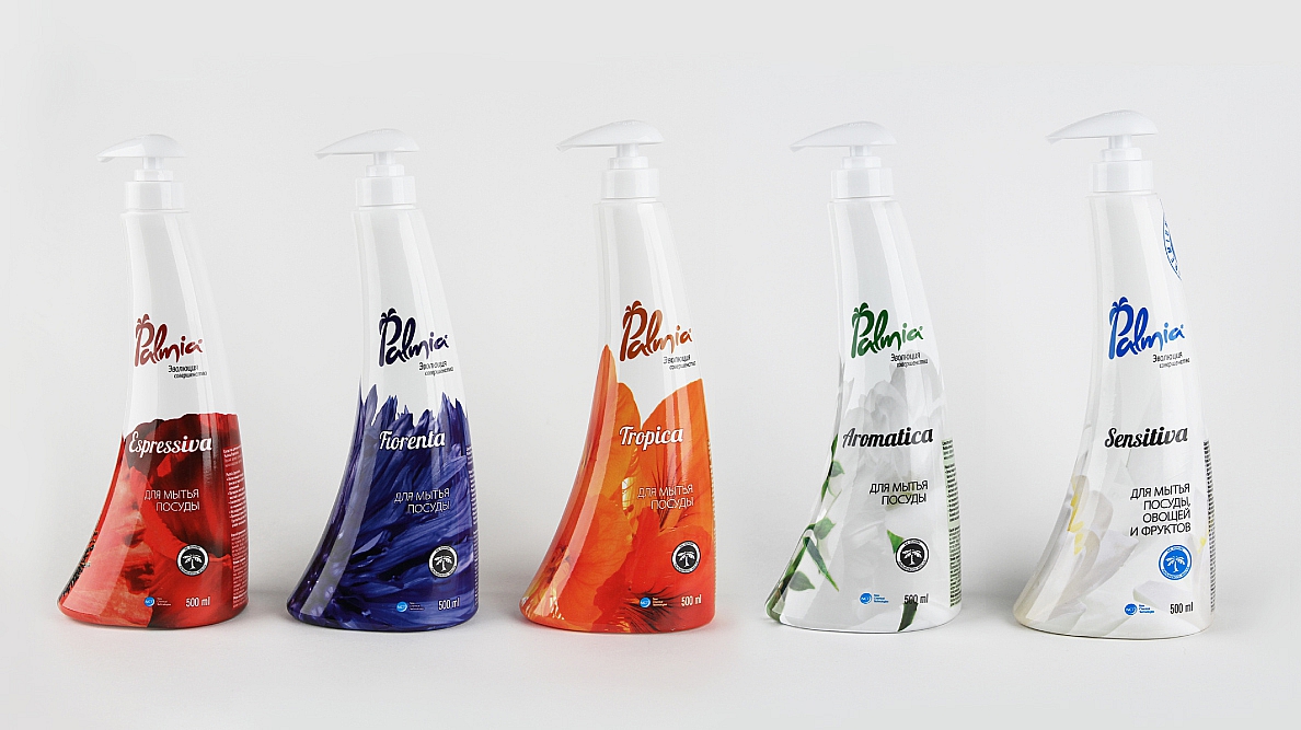 Петербургская компания «Новые Химические Технологии» вывела на рынок новую марку средства для мытья посуды Palmia. За нейминг, концепцию бренда и дизайн упаковки отвечала брендинговая компания Coruna Branding.