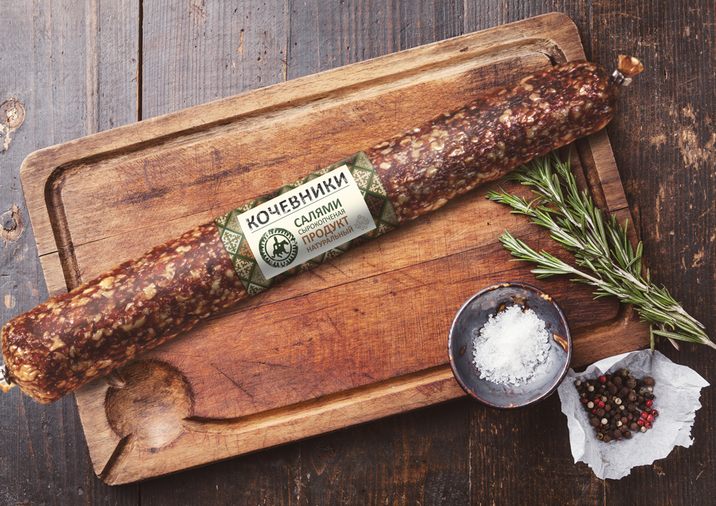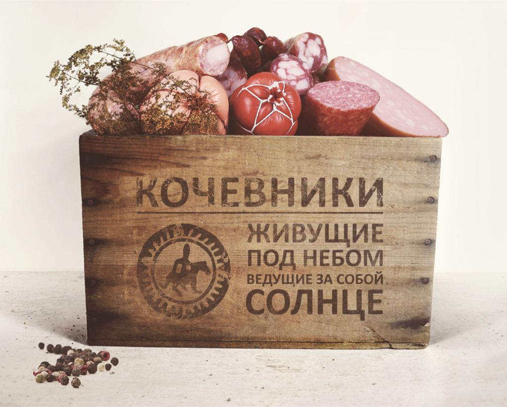 Бренд-нейм «Кочевники» был выбран из 150 разработанных вариантов названий. И неслучайно, ведь именно кочевые племена считаются «изобретателями» колбасы. Это название пронизано вольными ветрами, солнечным рассветом и вкусом природы. На основе старинных преданий родился и слоган «Живущие под небом. Ведущие за собой солнце».