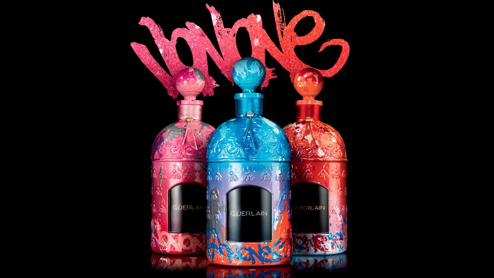 Парфюмерный дом Guerlain в сотрудничестве с граффити-художником JonOne создал лимитированный выпуск трех ароматов Guerlain в ультрасовременных ярких флаконах.