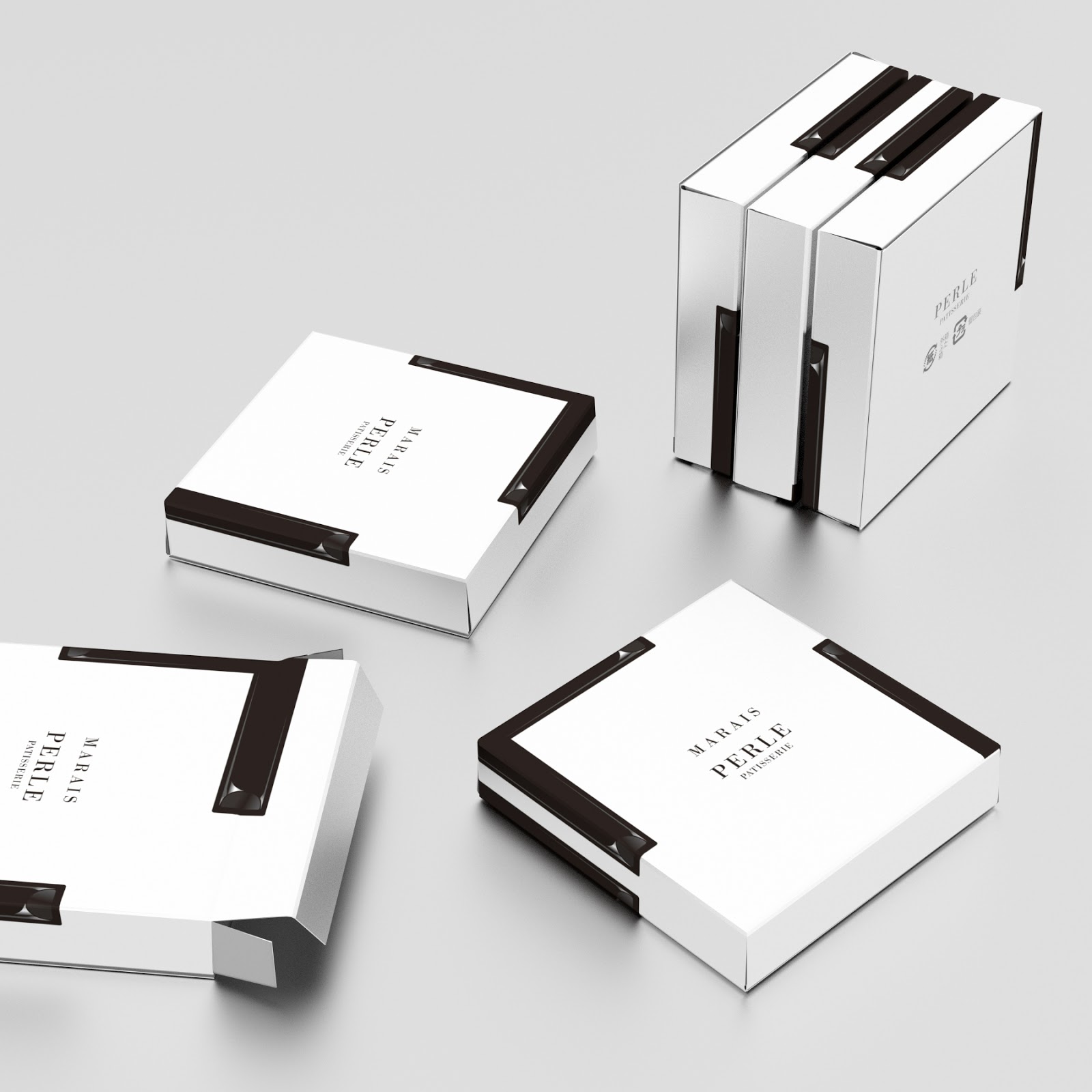Обычно в подарочных коробках все пирожные аккуратно уложены по порядку. В проекте Marais для японской компании Patisserie Perle дизайнеры решили использовать другой подход. Им удалось сократить расходы, сфокусировавшись лишь на одном дизайне, а также задействовать все шесть поверхностей.