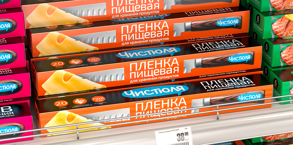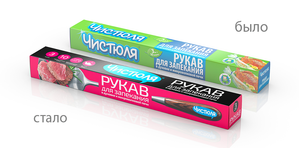Для настоящего кулинара, который заботится о качестве еды, пищевая упаковка является обязательным атрибутом кухни. На этих людей и рассчитан новый дизайн «Чистюли»: яркий, «вкусный», эмоциональный. Дизайн продает не просто фольгу, пергамент или рукав для запекания, а стиль жизни: возможность отрезать себе ломоть свежего сыра, обжарить на костре сочную говядину, запечь рассыпчатый картофель. Эмоциональность поддерживает и новый логотип в форме ба́бла — он как будто призывает хозяек поговорить о еде и любимых рецептах.