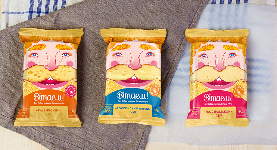 Бренд-персонаж — веселый «сырный белорус» с золотистыми усами, бородой и веснушками, любящий веселиться и принимать гостей.