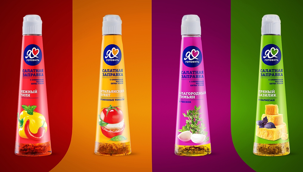 «Солнечные продукты» развивают свои планы распространить концепцию «Я люблю готовить» на всю линейку соусов и первыми на рынке появились салатные заправки. При разработке дизайна упаковки агентству важно было создать такую концепцию, в которой логотип и вкус были бы равнозначными акцентами, общая структура отличалась бы чёткостью, не была бы перегруженной и доносила бы инновационный характер продукта.