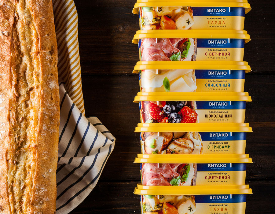 Новая упаковка показывает будущий завтрак — вкусный и разнообразный. При составлении нескольких пачек появляется бесконечный бутерброд, который более заметен на шумной полке супермаркета. Аппетитная продуктовая группа демонстрирует варианты вкусных завтраков с «Витако».
