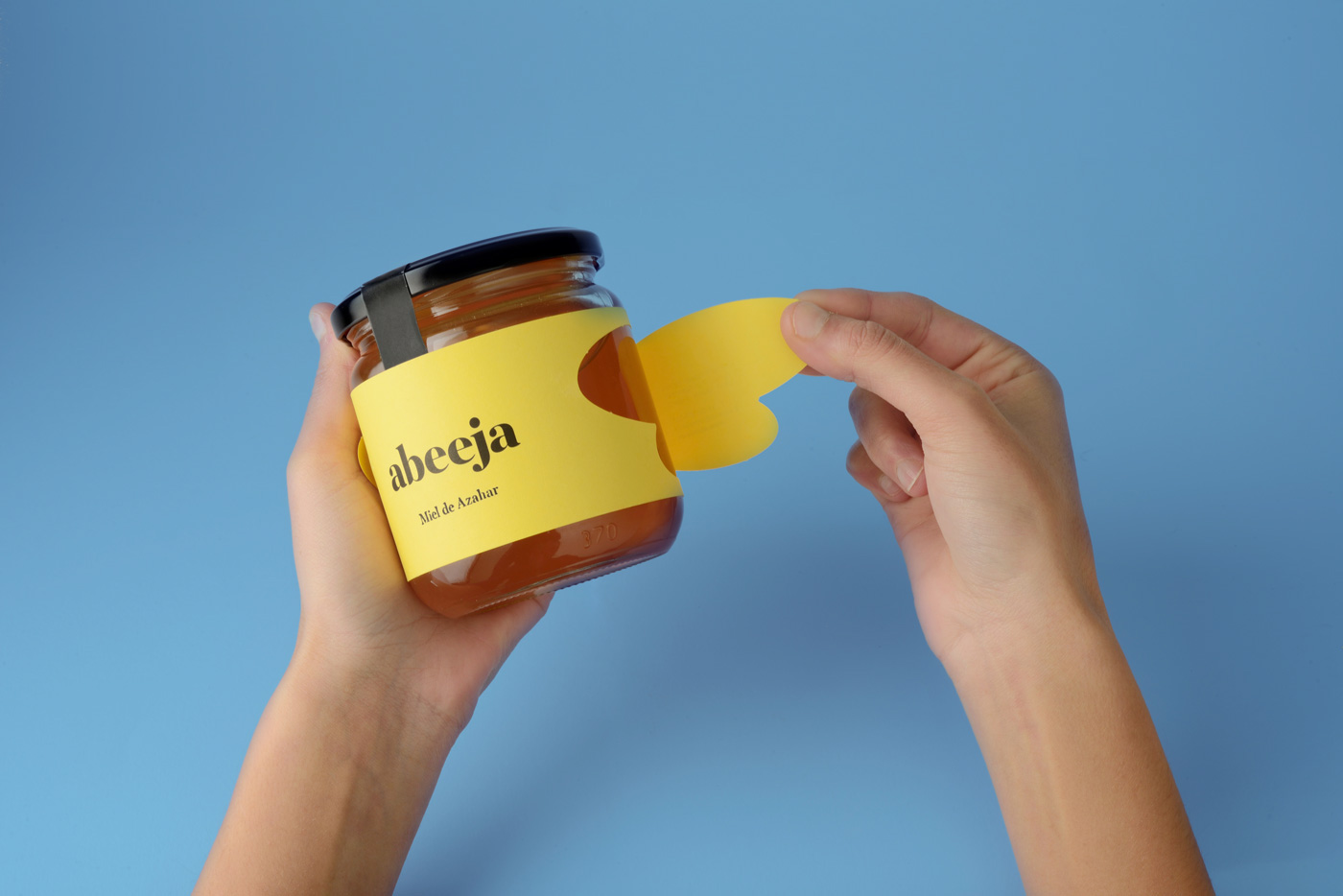 Основная идея упаковки заключается в том, чтобы довести продукт до совершенства. Всё начинается с названия бренда, который ломает границы, соединяя испанское и английское обозначение пчелы — англ. bee и исп. abeja.