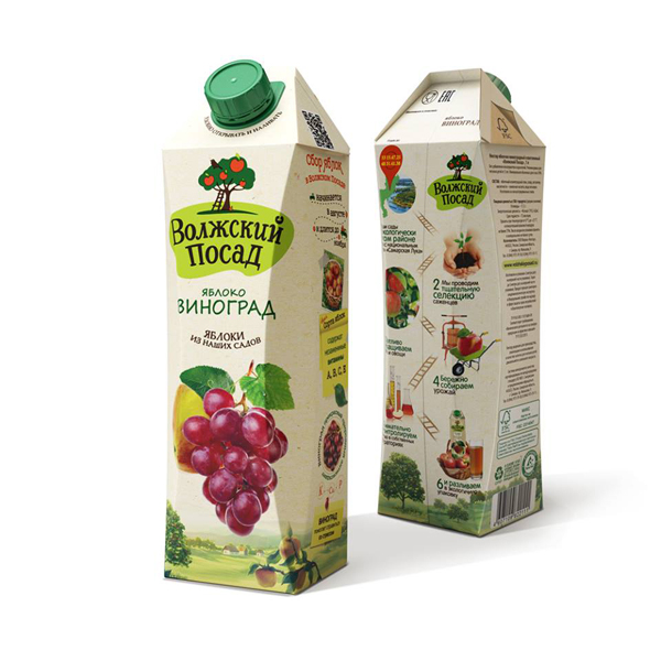 В рамках проекта агентством были разработаны бренд-стратегия, нейминг и дизайн упаковки. Коммуникация натурального честного продукта, сделанного из местных фруктов, ягод и овощей, стала основой для стратегии бренда «Волжский Посад». У производителя, компании «Нектар», собственные яблочные сады в заповедном районе, недалеко от заказника Самарская Лука. Дизайн основной линейки соков и нектаров создает экологически-ботанический образ бренда, в нижней части упаковки изображен гармоничный поволжский пейзаж.