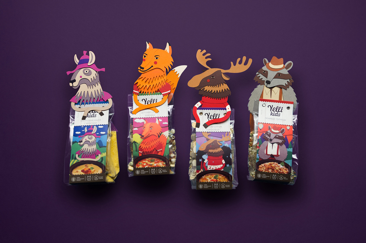 Каждая упаковка Yelli Kids — это новая история о нашей планете и ее жителях. По-детски наивные, сделанные из аппликаций, со своими сюжетами и национальными особенностями. Дизайнеры создали упаковки, которые становятся элементами игры и рассказывают истории.