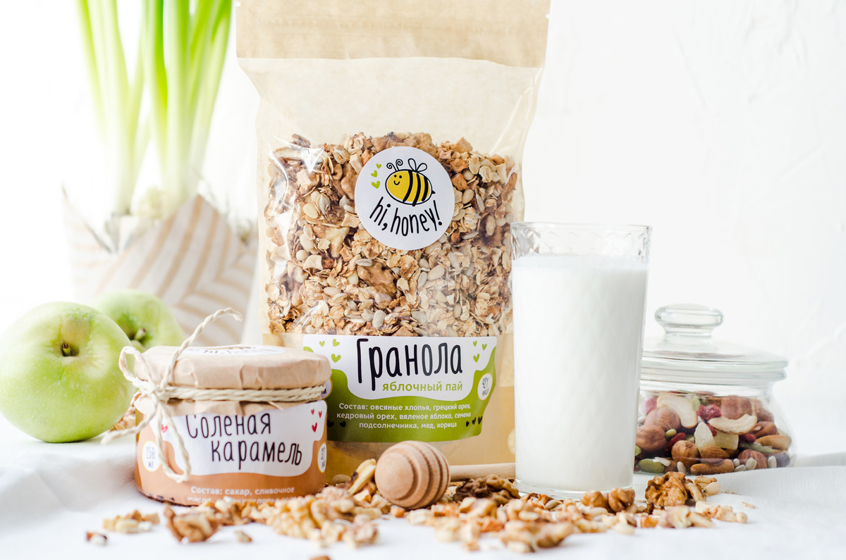 Команда Bread Agency представляет «стартап брендинг» по реализации питерского проекта — новая торговая марка домашней гранолы «Hi, honey!».