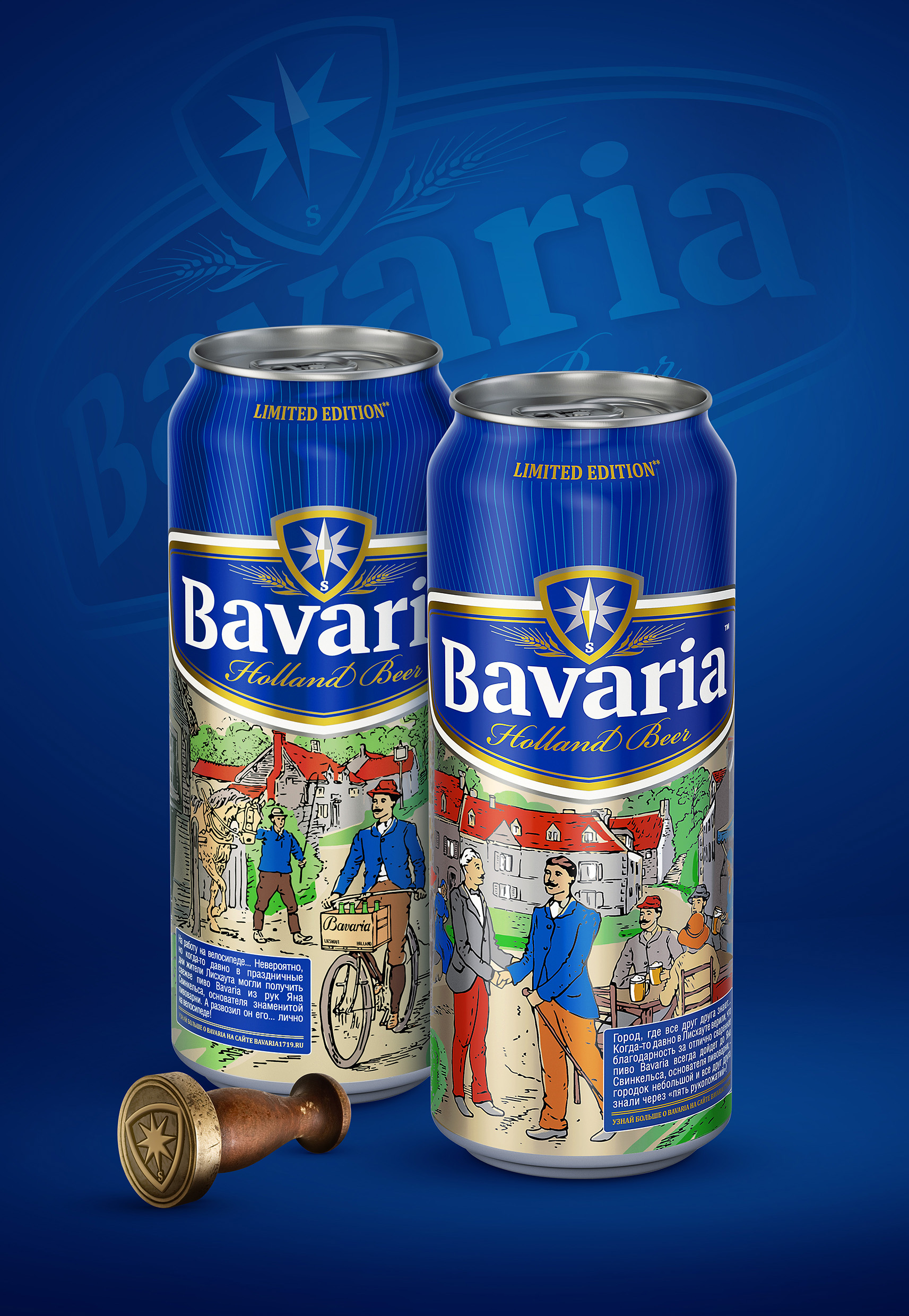 Пиво Bavaria — бренд с богатой историей, сохранивший в себе верность старым традициям и преданность делу своих создателей. В 2016 году на полках магазинов появилась лимитированная версия банок и бутылок Bavaria с новым ярким дизайном. За основу была взята концепция, передающая интересную историю развития бренда, и подчеркивающая его бессмертную верность качеству.