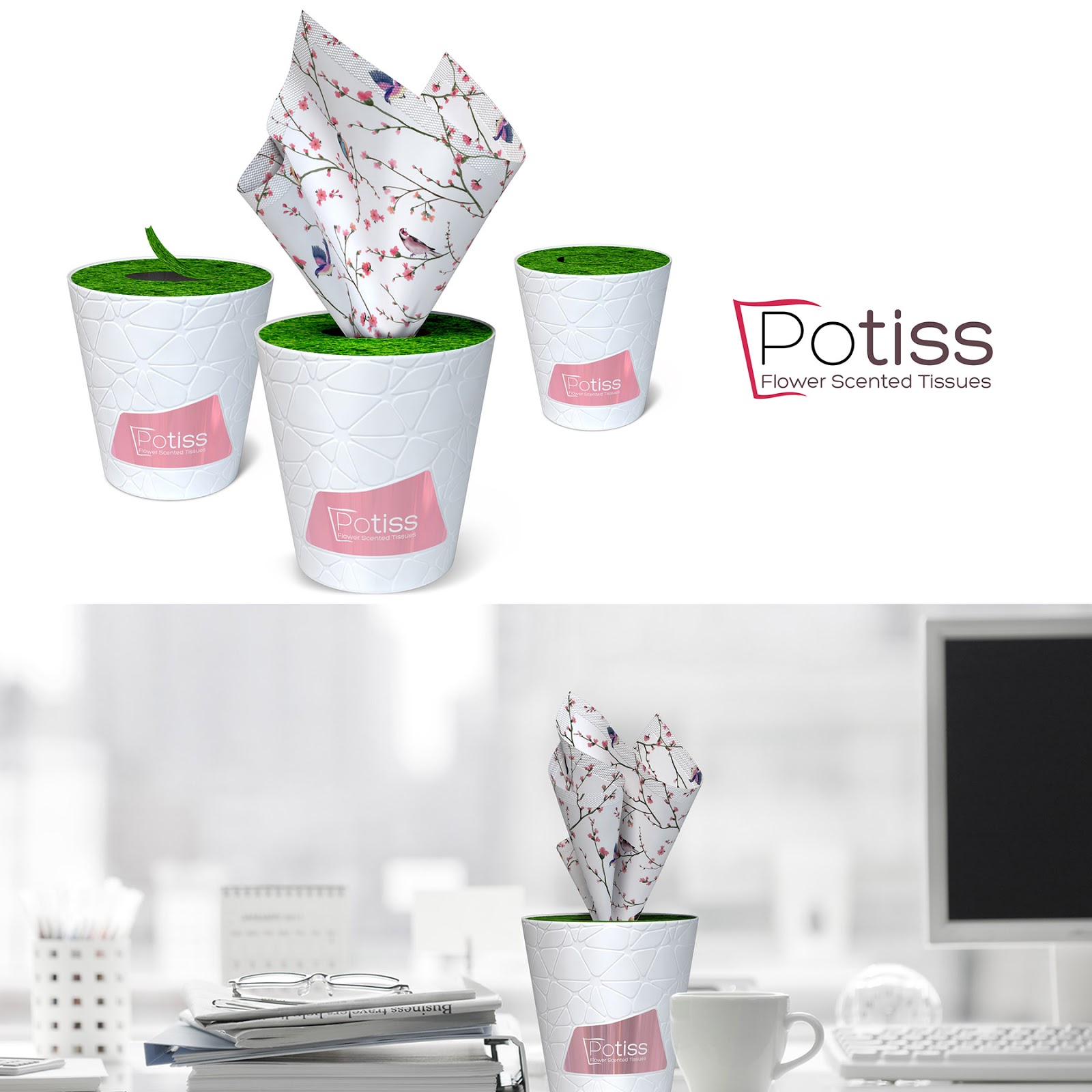 Концептуальный дизайн коробки Potiss по форме напоминает цветочный горшок. Такая идея была навеяна дизайнерам самим продуктом — бумажными салфетками с цветочным ароматом. Её можно использовать как стильный настольный аксессуар.