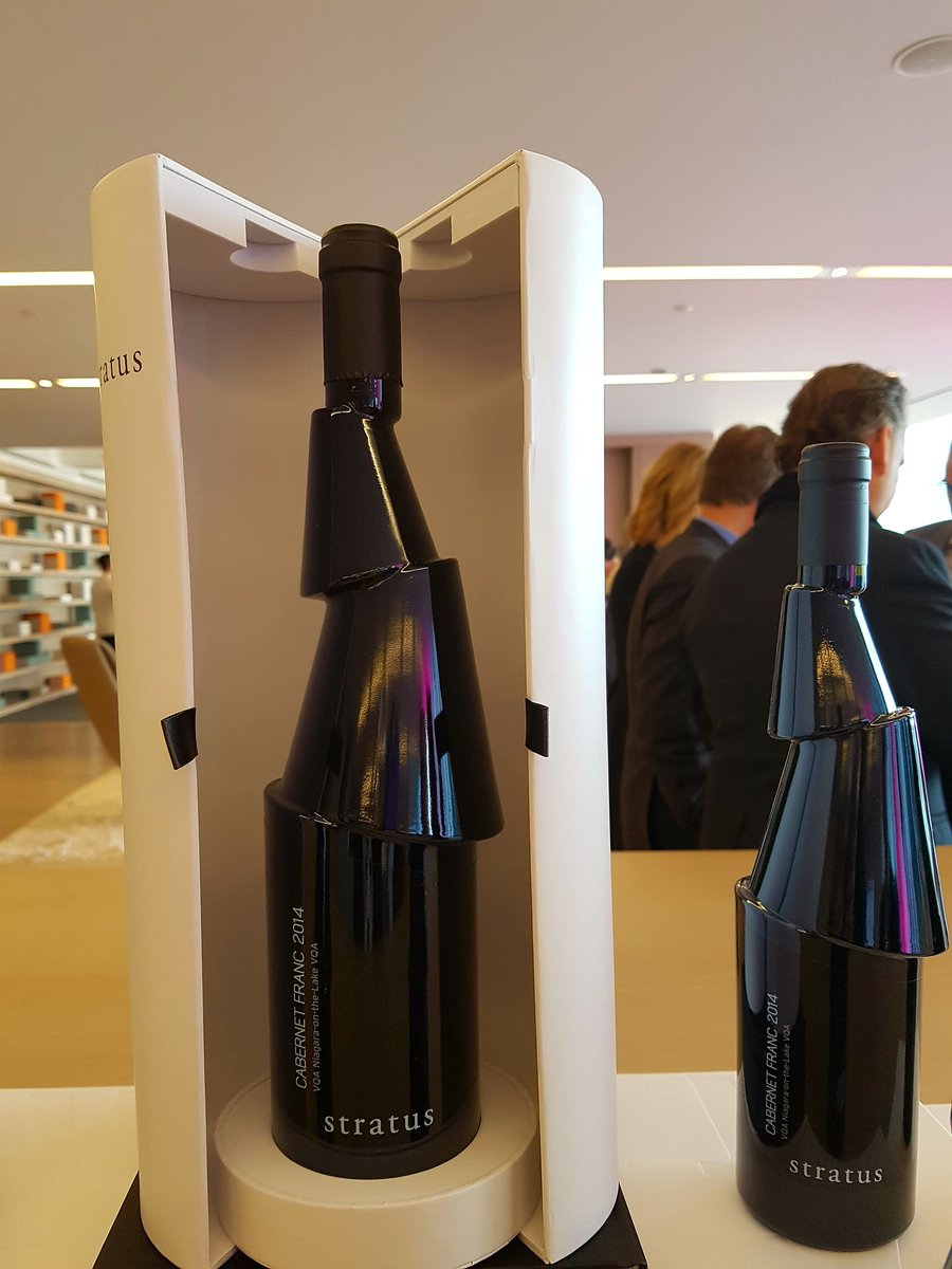 Известный художник и дизайнер Карим Рашид (Karim Rashid) создал уникальную деформированную бутылку вина, которая выглядит гораздо привлекательнее её обычных аналогов. Новая работа дизайнера стала результатом проекта для канадской винодельни Stratus Vineyards. Для создания этой необычной бутылки Рашид и его команда в буквальном смысле нарезали винную бутылку на четыре угловатых куска. После этого детали были собраны заново так, чтобы придать бутылке деформированный образ.