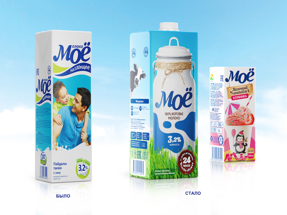 RG Brands — лидирующая компания в сфере напитков и продуктов питания в Казахстане, Кыргызстане, а также широко представлена в России: в регионах Сибирь, Урал и Поволжье. Компания обратилась в Depot WPF с задачей редизайна упаковки всей ассортиментной линейки для молочного бренда «Моё». Упаковка бренда не обновлялась достаточно долгое время, потеряла рыночную актуальность и, как следствие, продажи продукции начали падать.