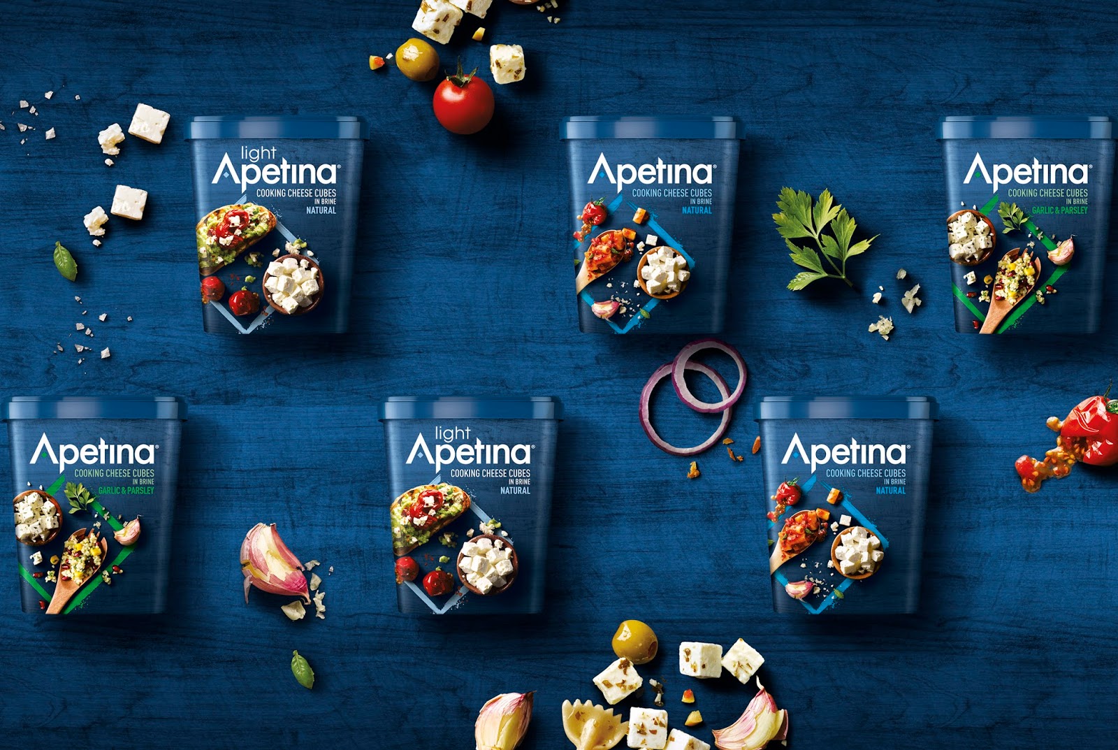 Компания Arla Foods объединилась с лондонским офисом дизайнерского агентства Bulletproof для создания современной системы идентификации и упаковочного дизайна для всемирно известного сырного бренда Apetina. Целью производителя было репозиционировать бренд Apetina в качестве сыра для приготовления блюд. Компании Arla Foods хотелось получить дизайн, который будет стимулировать переоценку и вдохновлять на создание креативных шедевров.