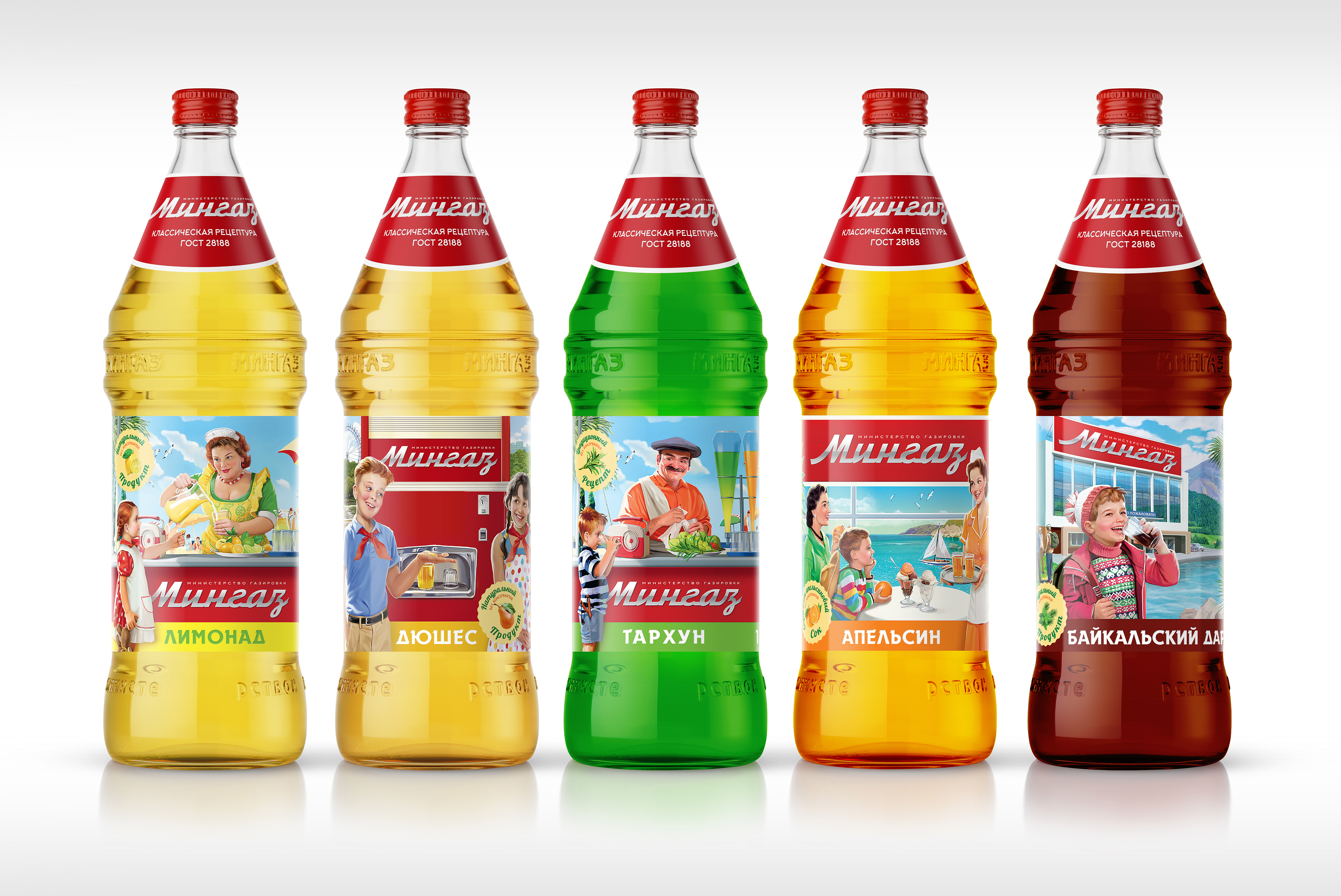 Советское детство всегда хочется вспоминать с улыбкой. Сколько всего замечательного было в то время: походы с песнями у костра, зимние катания с горки после уроков и, конечно, неповторимый вкус лимонада из автомата. Чтобы возродить эти теплые воспоминания, брендинговое агентство Viewpoint совместно с компанией Акваника разработали новую яркую упаковку для лимонадов бренда «Мингаз» («Министерство Газировки») с ностальгическими красочными иллюстрациями сюжетов из счастливого детства.