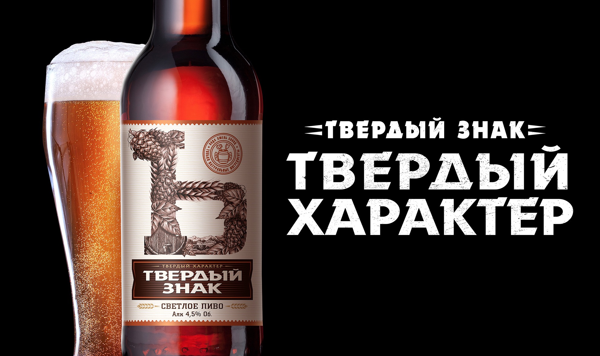 В ходе работы над проектом, появился ряд интересных названий, но одно из них говорило само за себя — «Твердый Знак». По мнению экспертов, оно наилучшим образом отражало мужественность и яркий характер нового пива, что подтвердилось многочисленными потребительскими исследованиями. В качестве логотипа бренда был создан уникальный символ в виде буквы «Ъ», сформированный из пивных ингредиентов и атрибутов, отражающих твердую уверенность в качестве и неповторимости рецептуры. А общая стилистика этикетки и цветовая гамма создают ощущение крафтовости пива и индивидуальности подхода к его приготовлению.