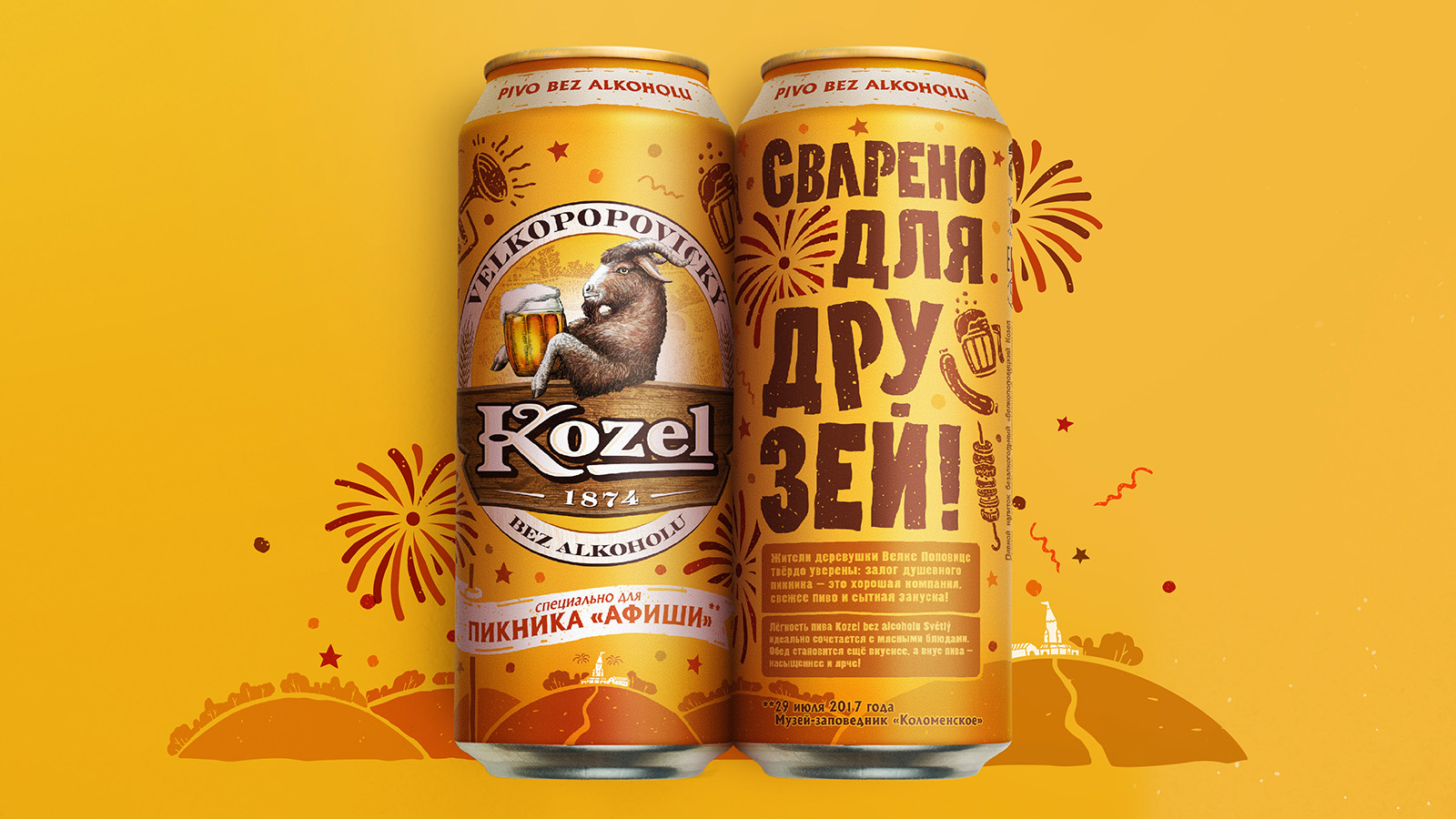 Именно поэтому по-настоящему чешский бренд Velkopopovicky Kozel выступает спонсором Пикника «Афиши» в этом году и приглашает всех друзей на пикник по-чешски. Специально для грандиозного летнего события была выпущена лимитированная серия упаковки Kozel Bez Alkoholu, которая будет продаваться во всех точках фудкорта и наполнит лето яркими эмоциями и неповторимым вкусом Kozel Světlý и Černý!