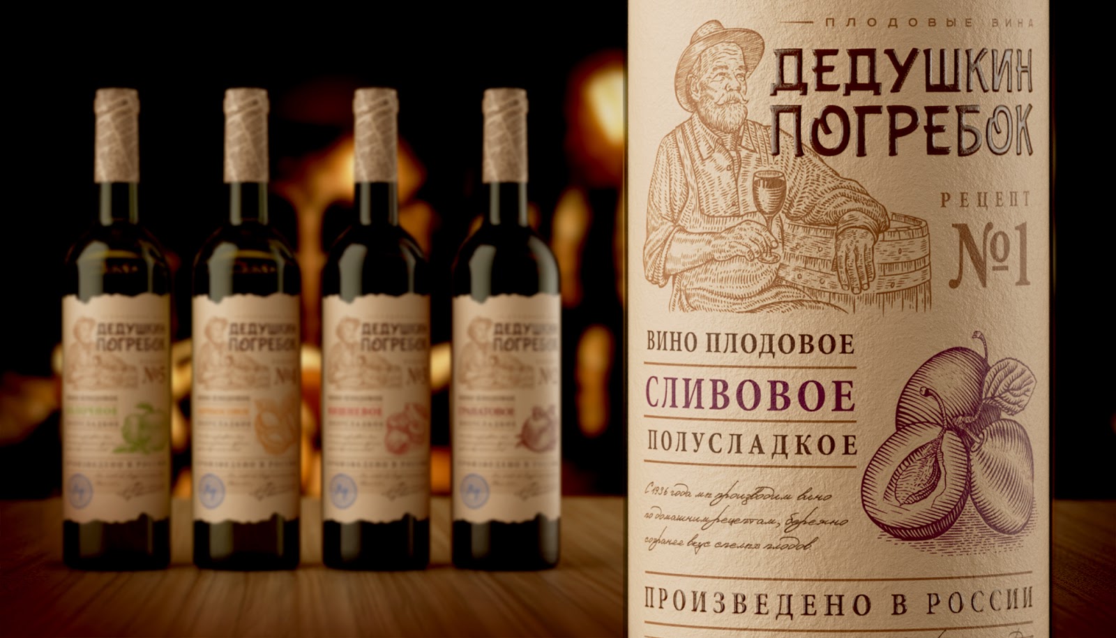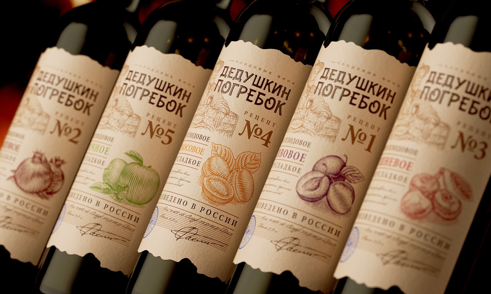 Перед специалистами стояла задача разработать дизайн этикеток серии плодовых вин «Дедушкин погребок».