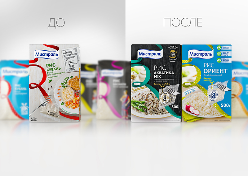Однако, по мере увеличения целевой аудитории, ассортимент пакетированных круп тоже расширился — в линейке появились как классические сорта круп (например, рис Ориент, Кубань), так и более премиальные (рис Басмати, Индика, Акватика Микс и др). Поэтому, чтобы потребителю было легче определиться с выбором, решено было привести линейку варочных пакетиков к той логике, в которой выстроены все продукты бренда «Мистраль» и разделить её на категории «стандарт» и «премиум».