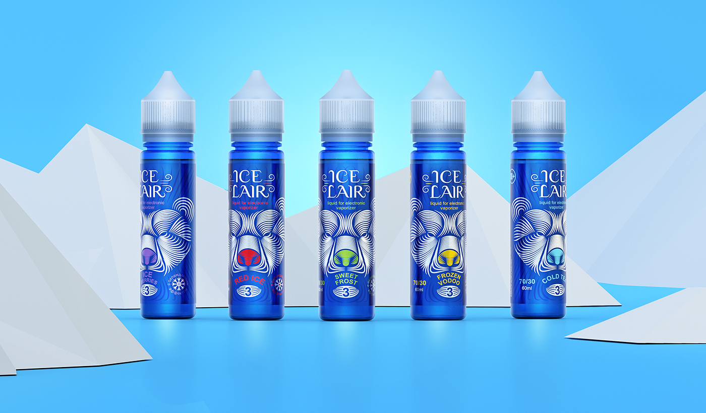Перед дизайнером была поставлена задача разработать нейминг, логотип и дизайн этикетки жидкостей для электронных сигарет. Отличительной особенностью продукта является охлаждающий эффект. Продукт предназначается по большей части для экспорта в Китай и страны СНГ.