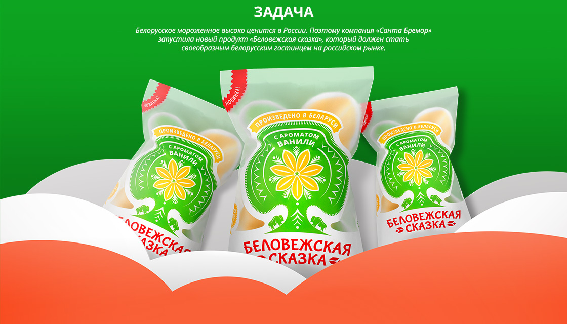 Белорусское мороженое высоко ценится в России. Поэтому компания «Санта Бремор» запустила новый продукт «Беловежская сказка», который должен стать своеобразным белорусским гостинцем на российском рынке.