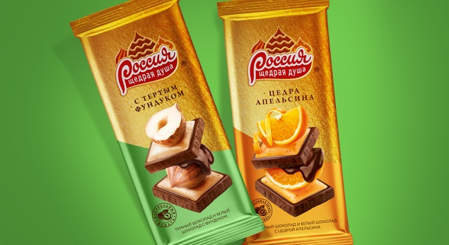 В семействе продуктов под брендом «Россия — щедрая душа» появилась новая линейка — белый шоколад с цедрой апельсина и темный шоколад с тертым фундуком.