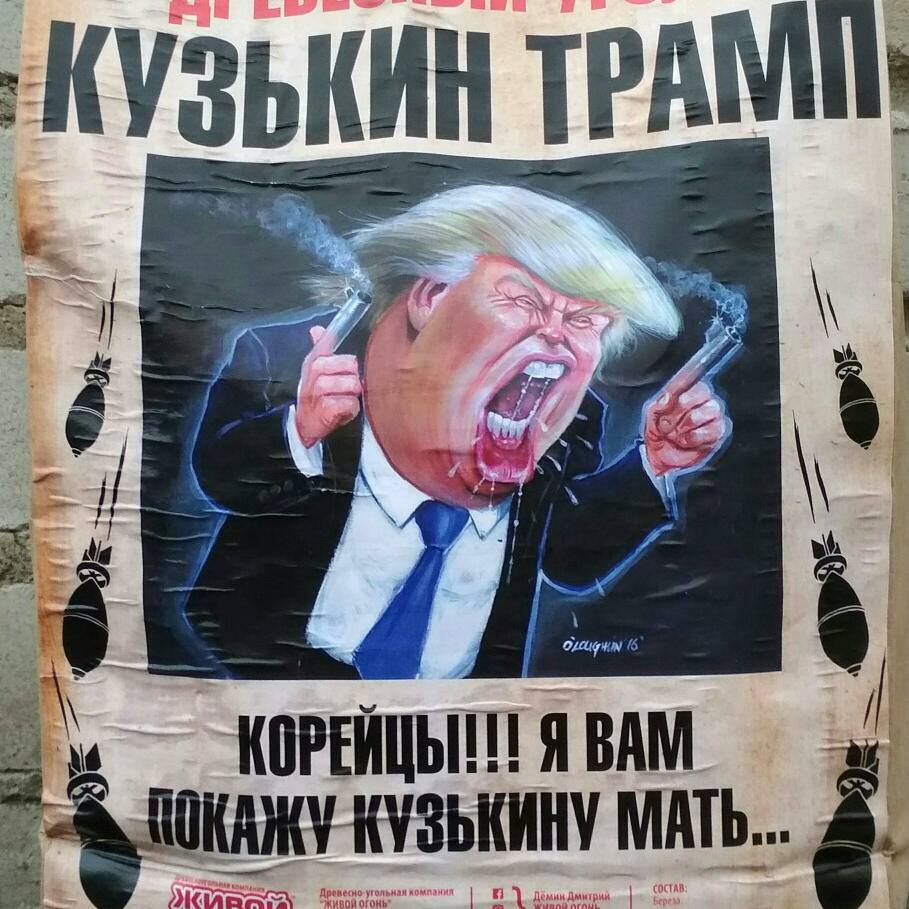 На новой упаковке изображен президент США Дональд Трамп, который с трибуны произносит: «Корейцы!!! Я вам покажу Кузькину мать!!!».