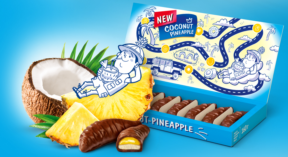 Новая упаковка получилась не просто яркой и интересной. Она на порядок улучшила коммуникацию вкуса и свойств продукта. Написание логотипа стало более динамичным, фуд-зона увеличена и содержит как изображение продукта, так и отрисованные визуализации вкусовых ингредиентов. Изменилась и сама конструкция картонной упаковки: в новом варианте появилась открывающаяся крышка. Также, по предложению агентства, в дизайн упаковки введен фирменный персонаж — путешественник, добывающий лучшие плоды для самого нежного фруктового суфле.