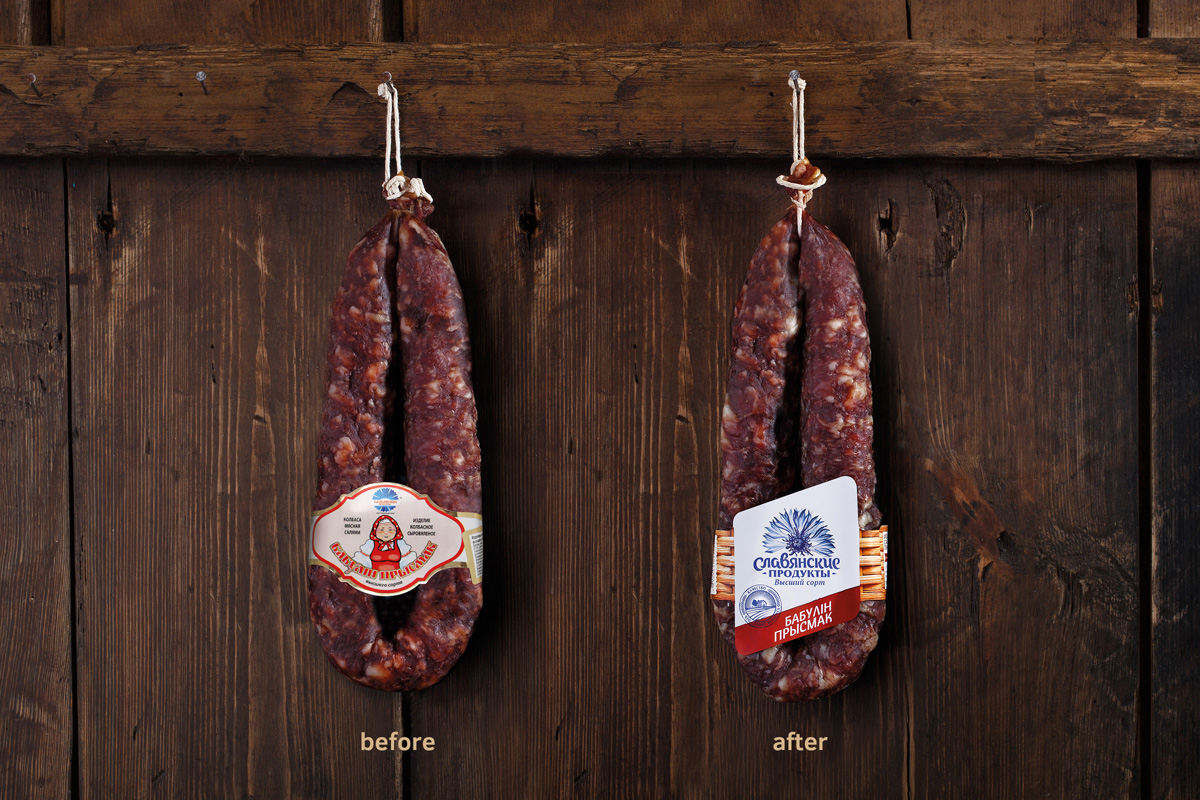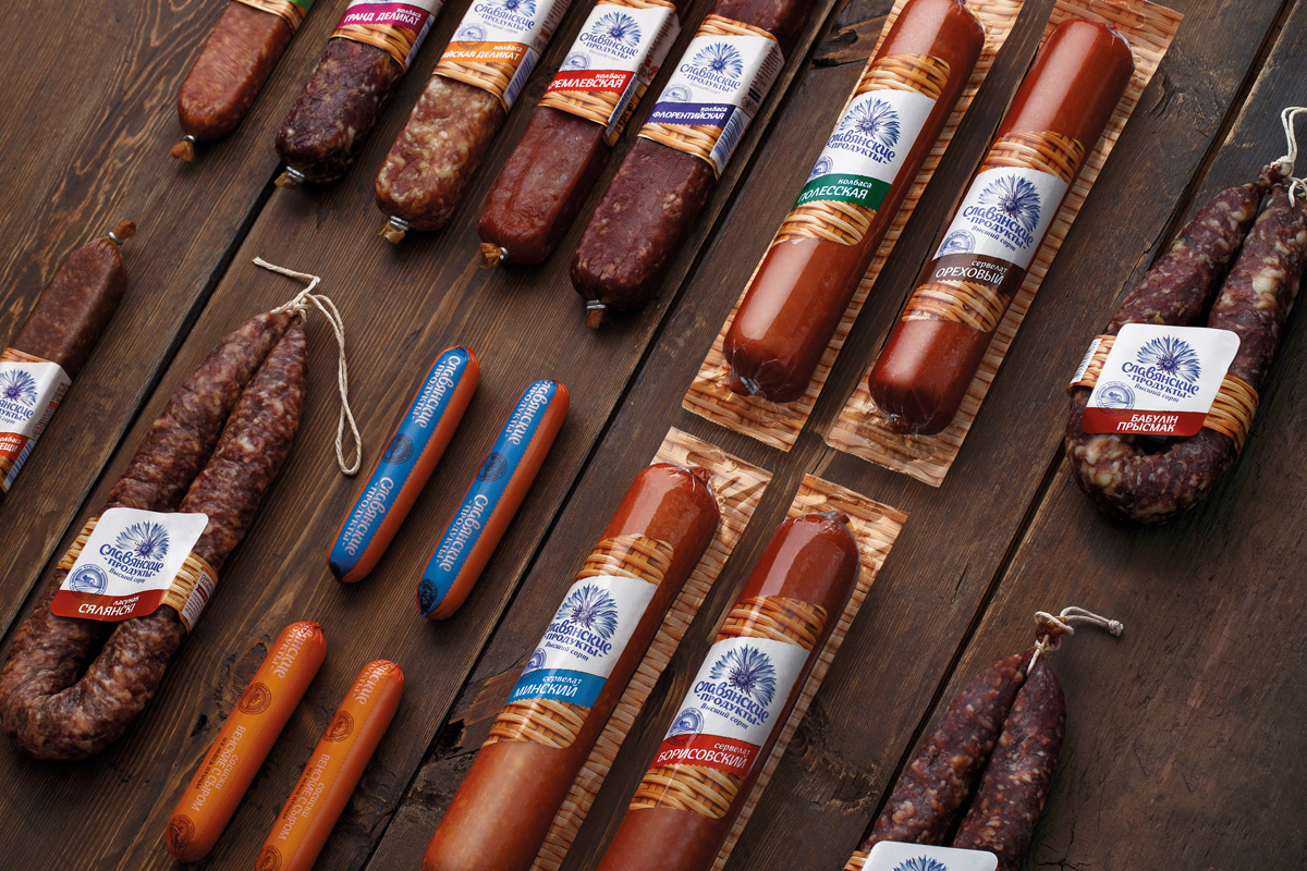 «Славянские продукты» — зонтичный бренд мясных и колбасных изделий ООО «Славпродсервис». Белорусские пищевые товары славятся в стране и за рубежом своим качеством. Поэтому обновленный дизайн подчёркивает происхождение торговой марки и помогает раскрыть позиционирование — вызывающий доверие местный продукт по традиционным проверенным рецептам, как исконно славянским, так и полюбившимся европейским.