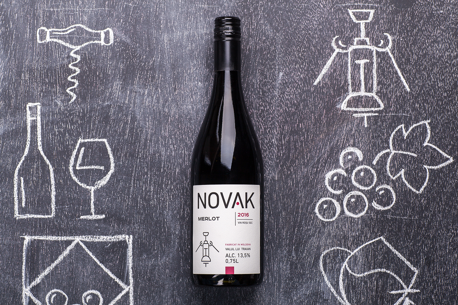 Novak — это прежде всего качественное вино для молодых людей, которые ценят качественный и оригинальный продукт с характером. Именно поэтому визуальная концепция оформления была выполнена в достаточно новаторском и нестандартном для молдавского рынка ключе. Общая стилистика вин Novak несёт в себе современный, функционально-информативный контекст, который выделяет продукт на полке среди конкурентов с классическими винными этикетками.
