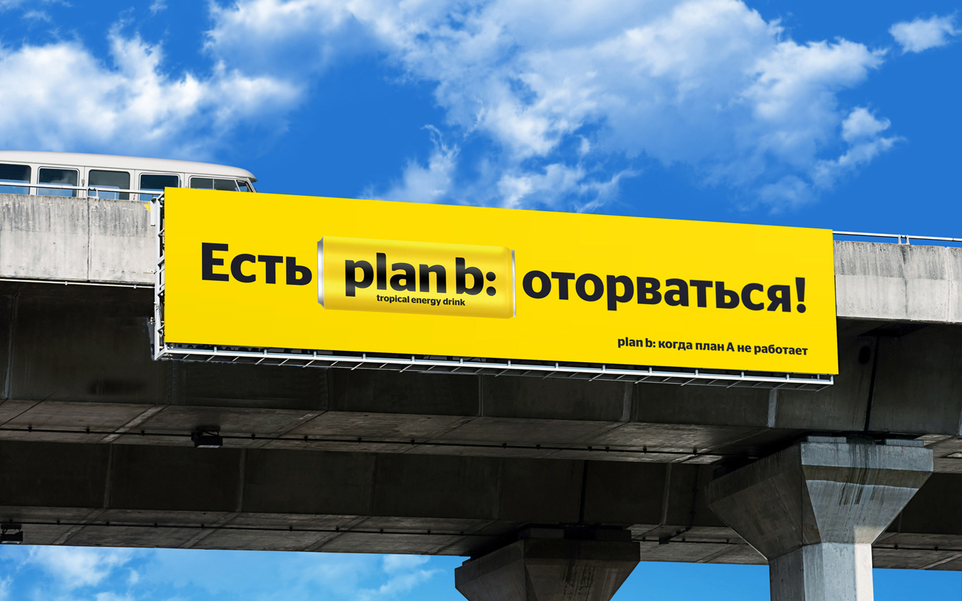 В дизайне мы избавились от всего лишнего, отказавшись от клише и стереотипов категории энергетических напитков. Упаковка «Plan B» не нуждается в «украшениях» — она является основой и центром коммуникации, находясь в постоянном контакте с потребителем. В результате получилась цельная коммуникация, где упаковка заявляет: альтернативный план — это напиток «Plan B».