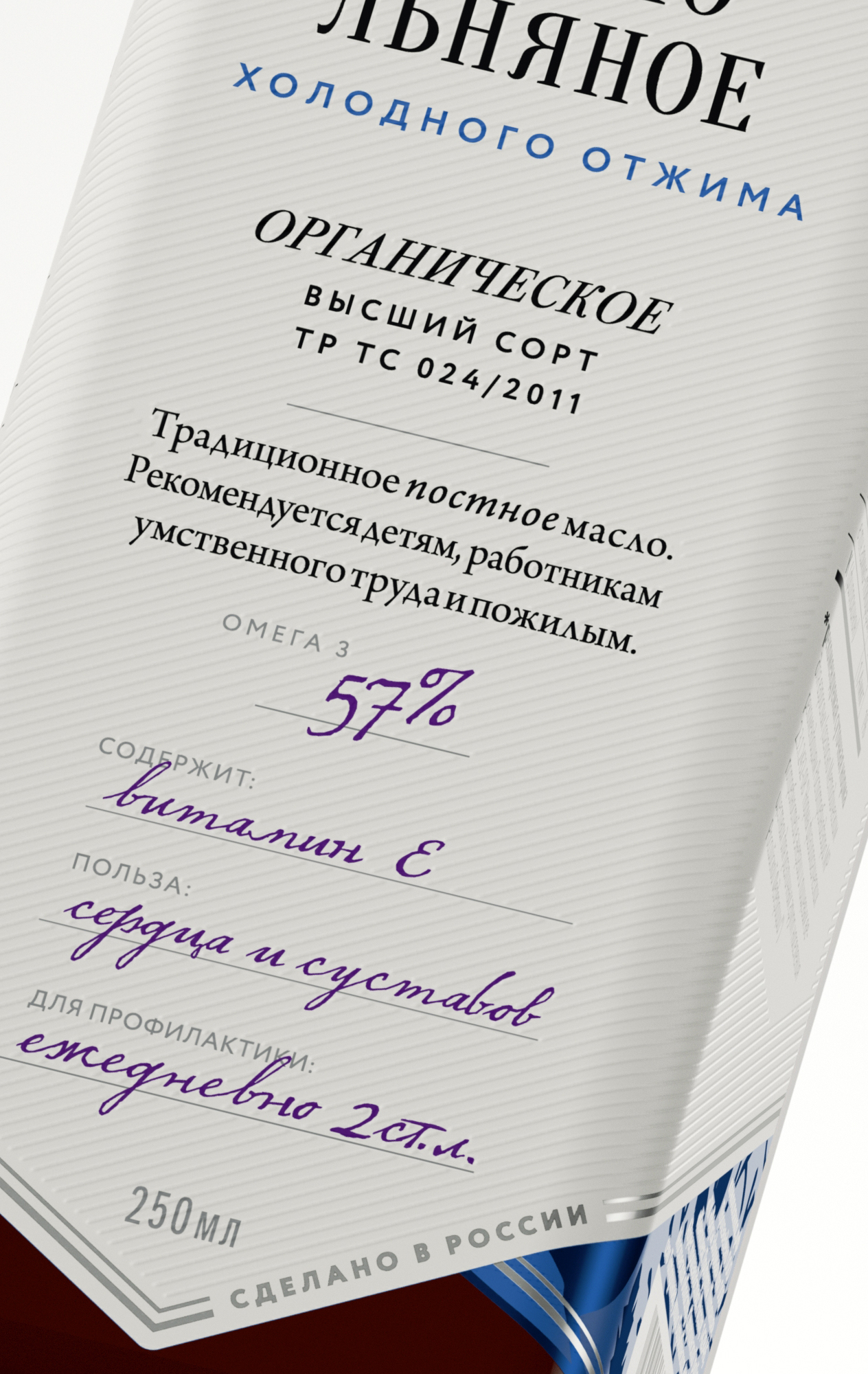Основная проблема с редкими маслами в том, что об их правильном использовании знают лишь диетологи и увлеченные вегетарианцы. Чтобы донести до широкой аудитории, что эти масла полезны, вкусны и не требуют сложных манипуляций, мы разработали упаковку, отсылающую нас к рецептурным отделам в старинных аптеках. На этикетке каждого масла простой рецепт: кому и чем это масло полезно и в каких блюдах его рекомендуется применять.