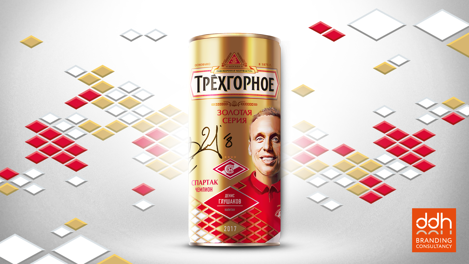 Вдохновившись успехами «Спартака» и ее лидерами, пиво «Трехгорное» совместно с брендинговым агентством DDH Branding Consultancy выпустило эксклюзивную «Золотую серию» — памятный подарок для всех красно-белых.