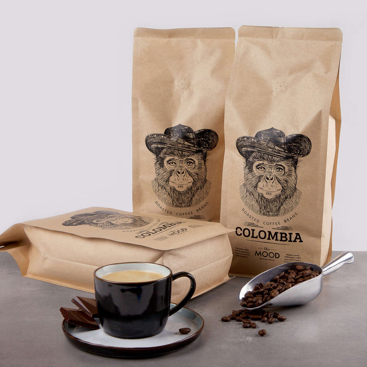 Дизайнер решила использовать образ обезьян в разных настроениях. Ведь выражения и поведение обезьян отражают их настроение, также как у людей. А поскольку во всех кофейных регионах обитают обезьяны, они должны были стать запоминающимся образом, пишет Upakovano.ru. При этом в данном случае обезьяны олицетворяют дипломатичность, интеллект и мудрость.