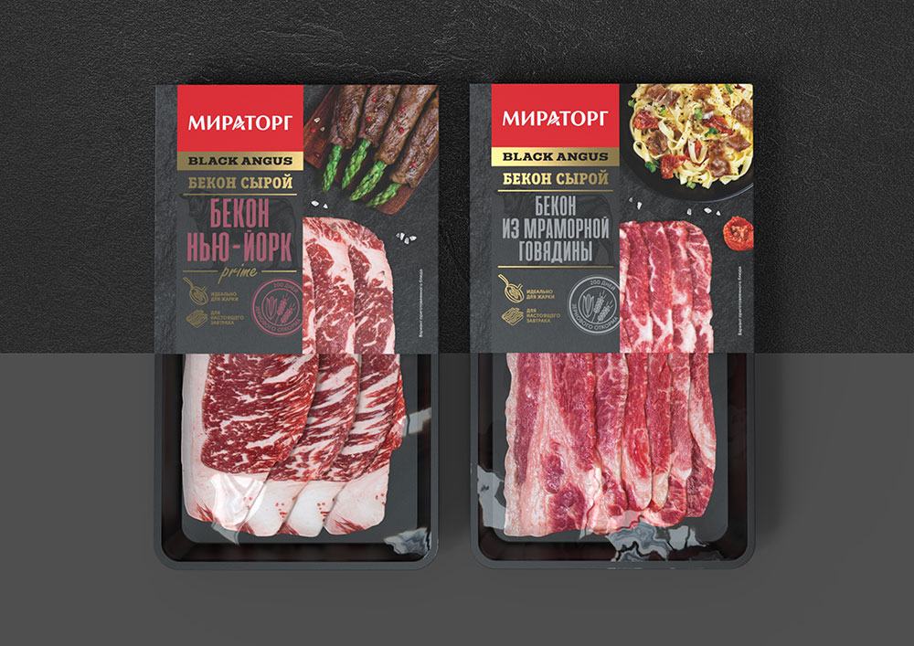 На российском рынке бекон пока не является продуктовым фаворитом. Цель новой линейки «Мираторга» — убедить покупателей в потребительской ценности одного из самых ароматных, нежных и вкусных мясных продуктов, поднять его на новый уровень востребованности и повысить продажи. Дизайн упаковки призван отразить уникальность бекона, подчеркнуть его привлекательность и стимулировать покупку.