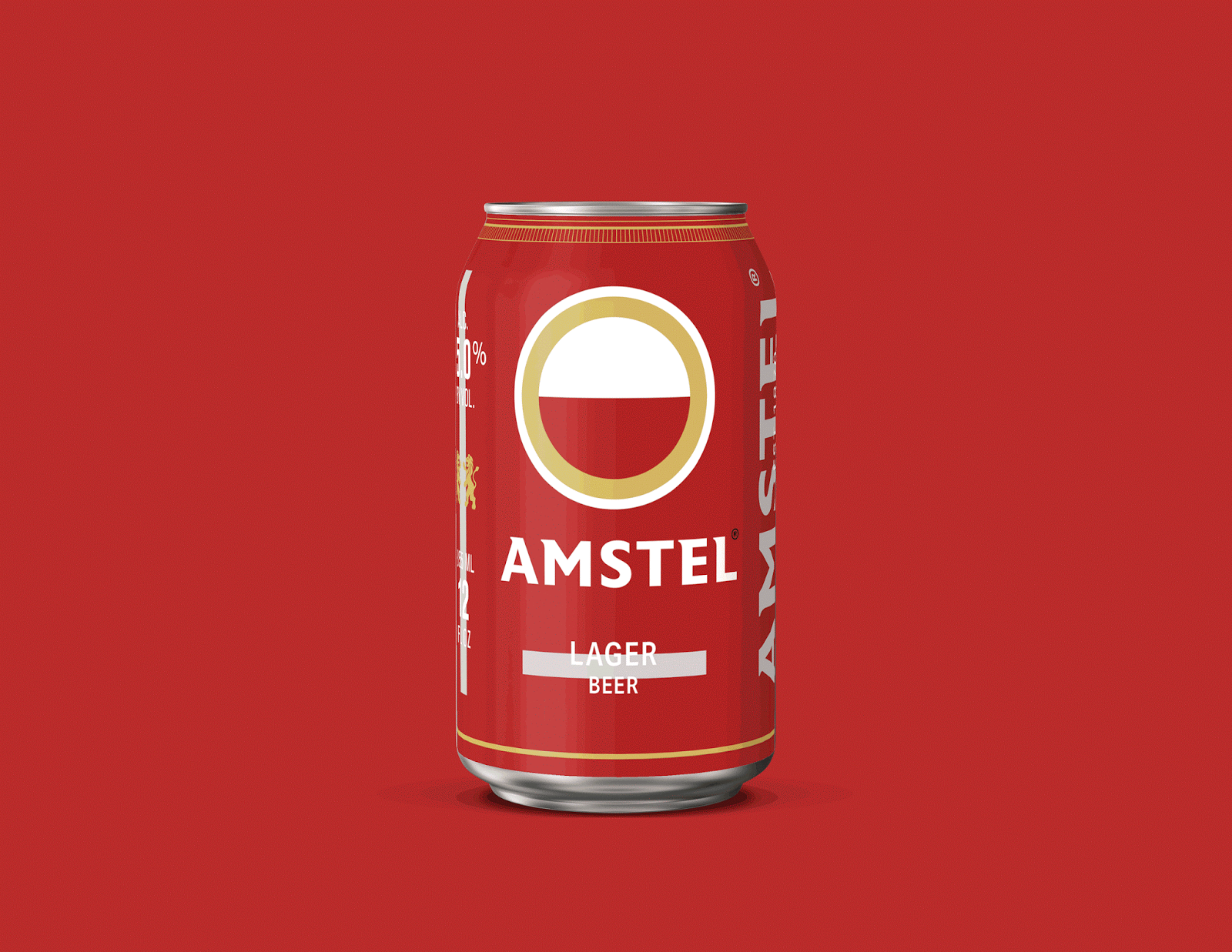 Самые запоминающиеся элементы бренда были изолированы, чтобы придать им чистоты. Как пишет Upakovano.ru, с самого своего основания в 1870 году бренд Amstel полагался на очень простые детали, которые стали известны всему миру, — красный полукруг, заключённый в золотой круг. Простые формы с лёгкостью олицетворяют содержание и поддержку, а форма круга предполагает непрерывность.