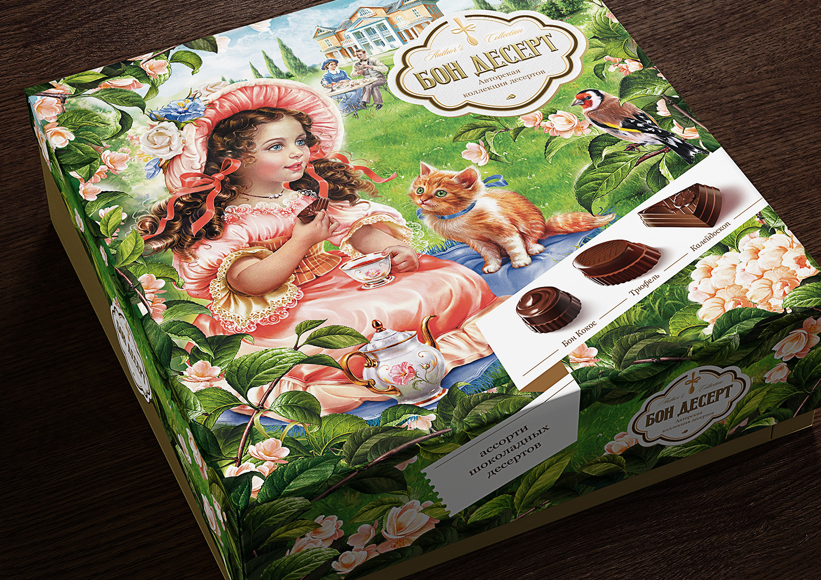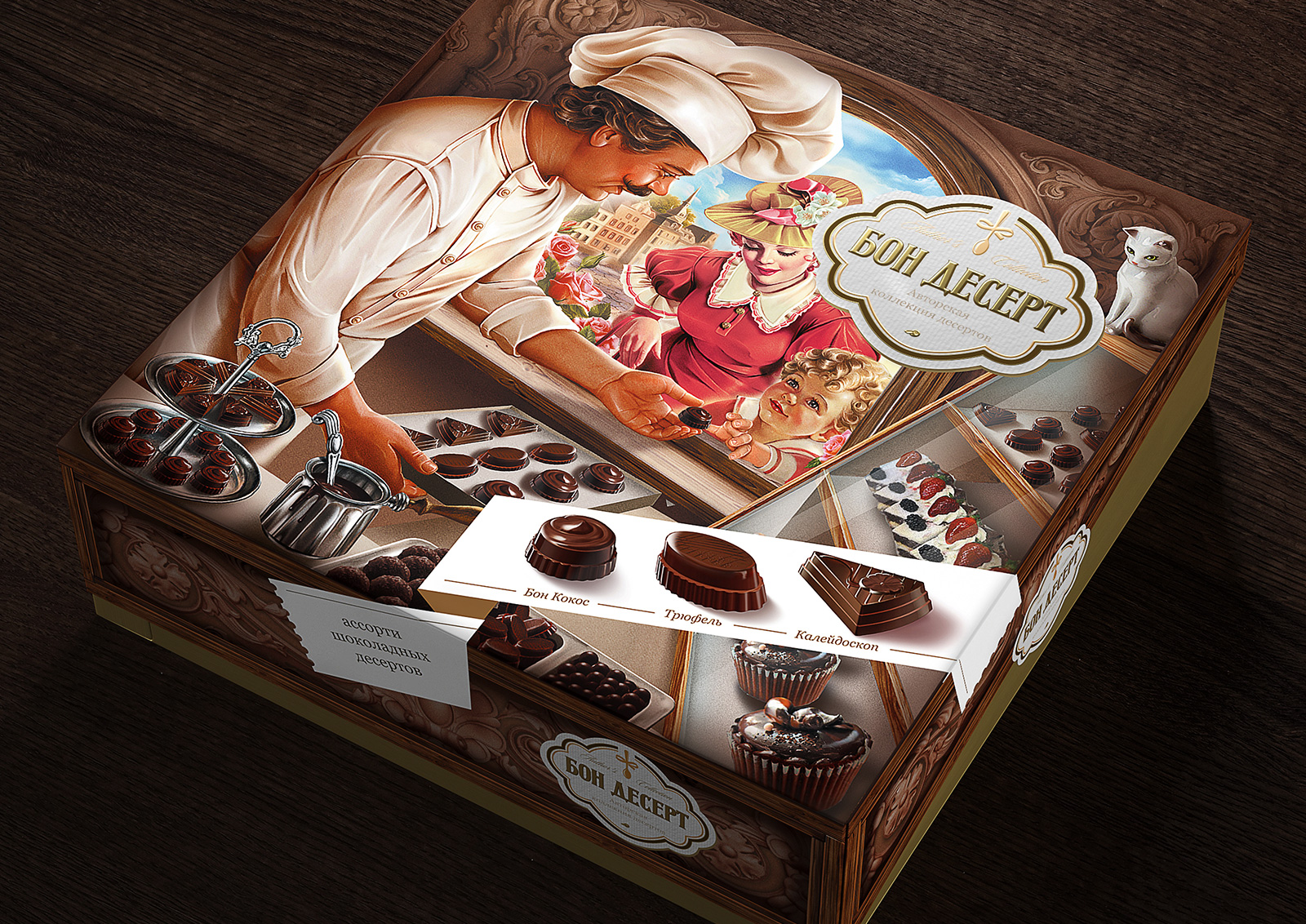Агентство BQB, изучив рынок шоколадных десертов и особенности данной категории, предложило заказчику концепцию упаковки, построенную на высококачественной иллюстрации, выполненной в ретро-стилистике. Такой имидж и детальность прорисовки хорошо подчеркивают качество самого продукта, в основе которого ручная работа и индивидуальный подход на всех этапах производства.