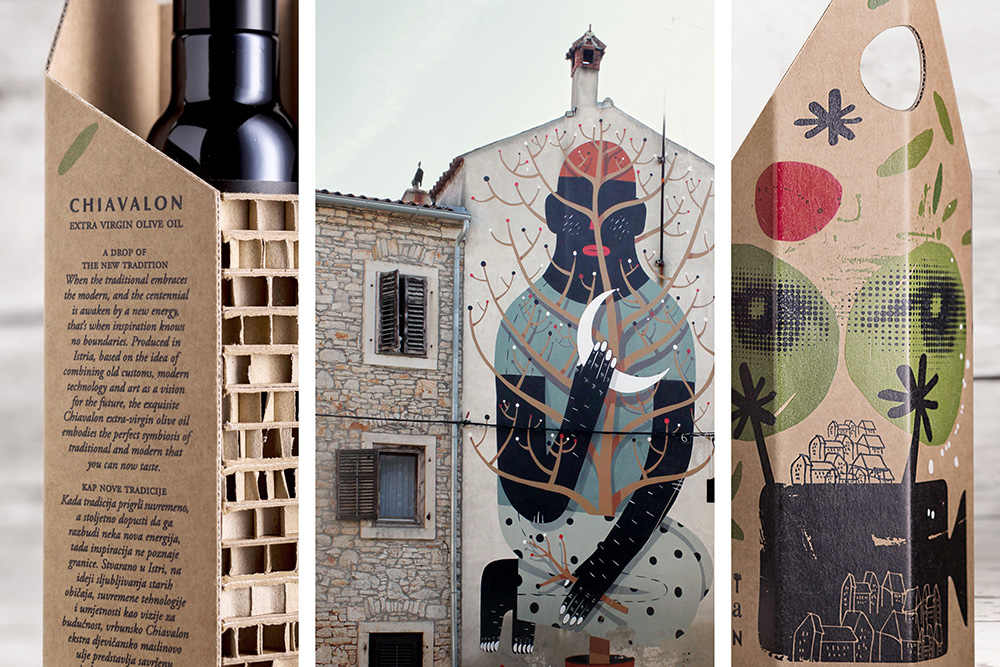 Дизайн упаковки был доверен агентству Bruketa&Zinic&Grey. В результате работы дизайнеров, каждая бутылка оливкового масла Chiavalon была помещена в миниатюрный традиционный домик Истрии, украшенный своеобразными иллюстрациями. В последние годы в небольшом городе на Истрии под названием Воднян (Vodnjan) стены домов украшаются красочными произведениями искусства и фресками, которые и стали вдохновением для оформления упаковок масла, пишет Upakovano.ru.