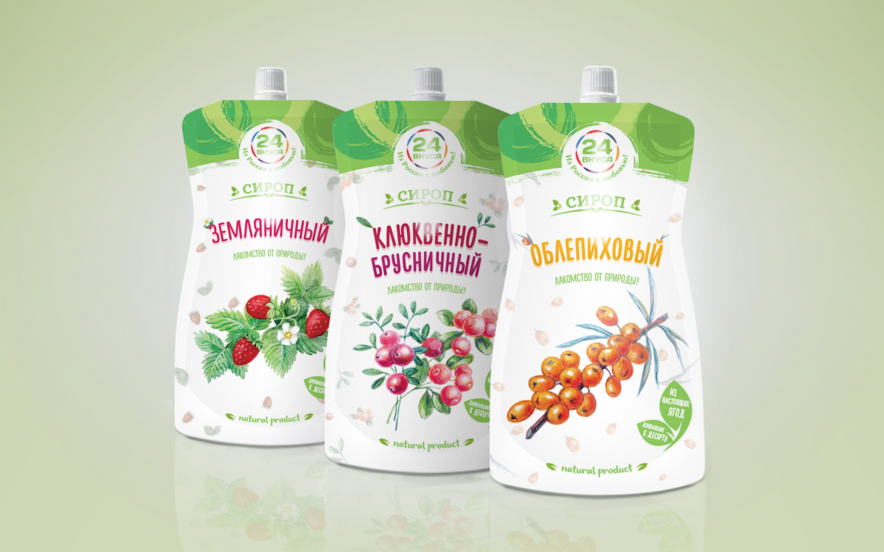 Перед дизайнерами стояла задача разработать для компании Глобус дизайн новой линейки продукции из категории «Морсы, Сиропы и Нектары» в упаковке дой-пак в количестве 10 SKU.