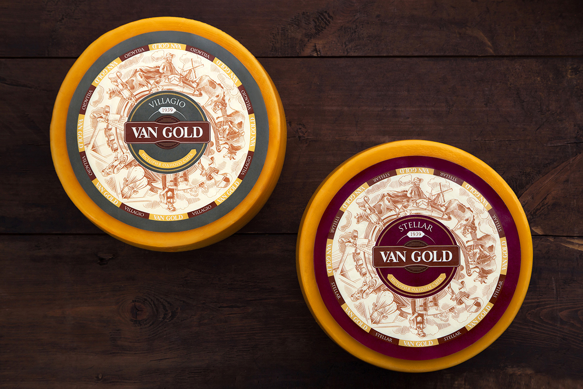 При создании торговой марки нам нужно было рассказать историю происхождения продукта — так и появился нейм Van Gold. Созвучный с фамилией знаменитого художника, он подчеркивает европейскую рецептуру сыра. К тому же, слово «Gold», то есть «золотой», в нейме — это и цвет сыра, и в некоторой мере маркер премиальности.