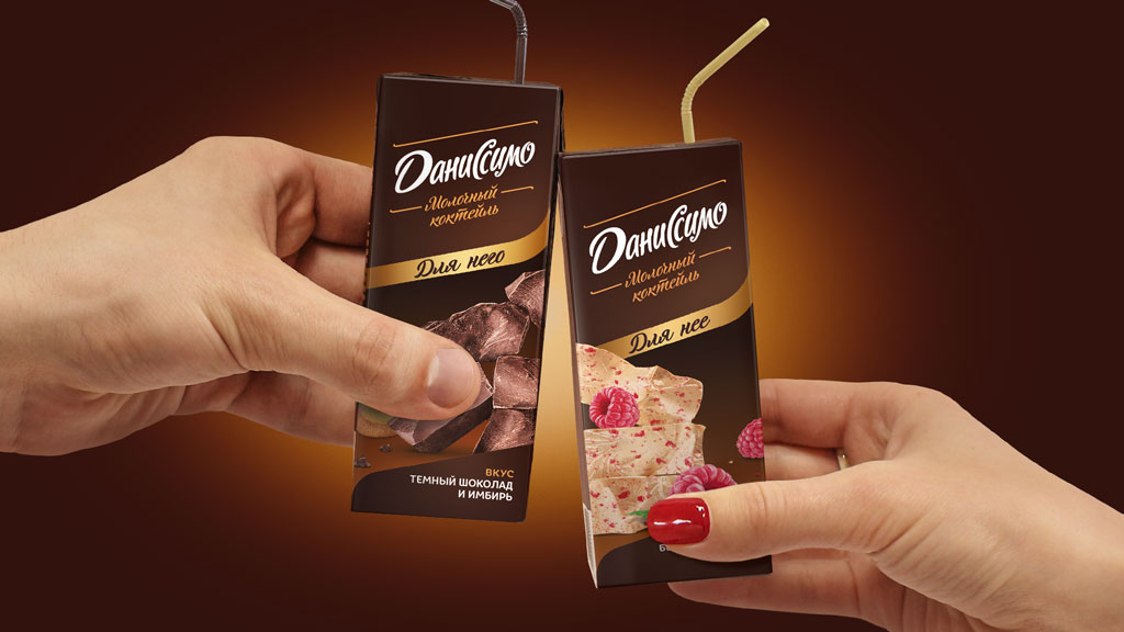 В преддверии весны компания «ДанонБел» выпустила лимитированную серию молочных коктейлей «Даниссимо» «для него и для нее» — два вкуса, продаваемые вместе. Дизайн упаковок раскрывает характер предложения и рассказывает нужную эмоциональную историю.