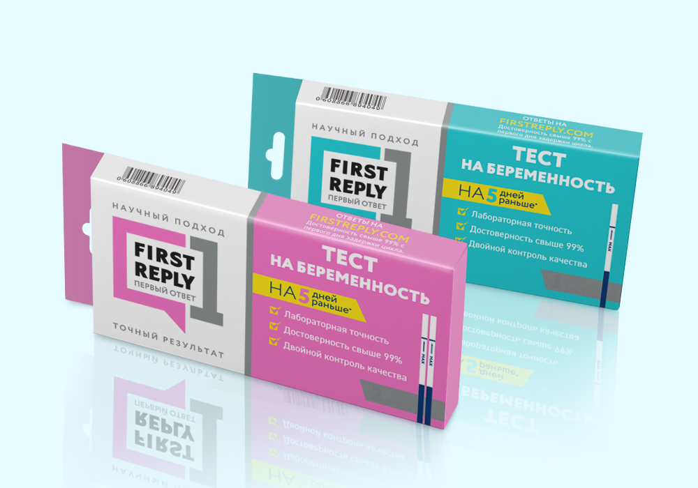 Ассортимент продукции включает в себя два варианта упаковки: с одним тестом, либо с двумя — для желающих провести раннее тестирование, а потом подтвердить результат. Дизайнеры решили выделить их разной цветовой гаммой, использовав в дизайне «символичные» для ситуации розовый и голубой цвета.